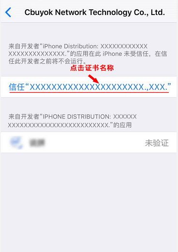 出现证书信任,都是苹果APP已经做了企业签名,没有点击信任证书,导致APP无法正常打开。